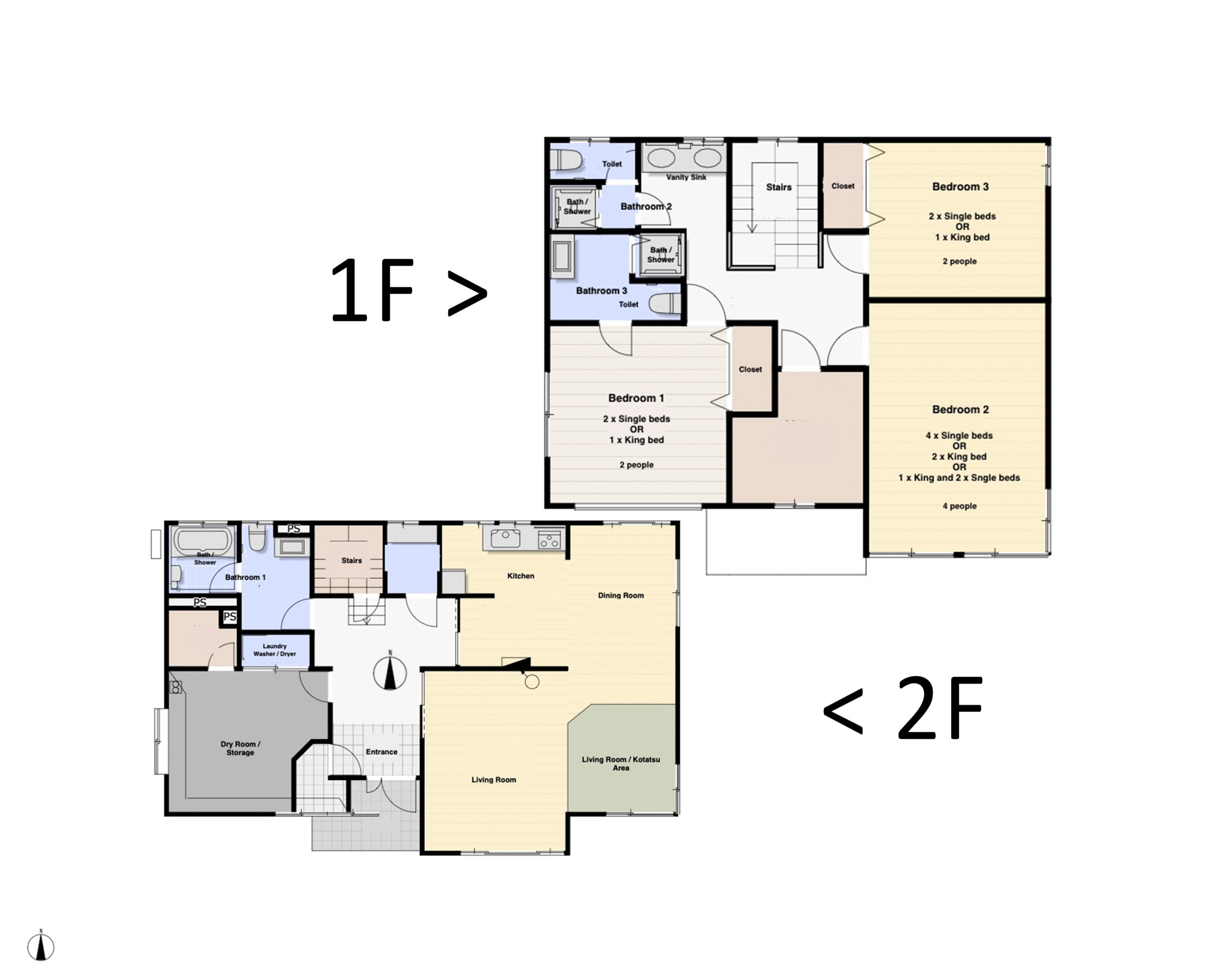 ・Bedroom 2: 2 King beds or 4 Single beds (sleeps 4).